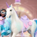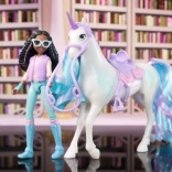 Die Puppe Layla hat 7 Biegepunkte für vielseitige Posen und das Einhorn Glacier besticht durch seine wunderschöne kämmbaren Mähne.