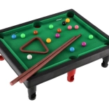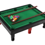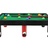 Der Mini-Tischbillardtisch für Kinder ist eine originalgetreue verkleinerte Version eines klassischen Billardtisches, die Sie einfach auf einen Tisch oder eine andere ebene Fläche stellen können. Die robuste Konstruktion und die Spielfläche mit grünem Tuch sorgen für einen gleichmäßigen Kugellauf und ein authentisches Spielerlebnis auch auf kleinem Raum.