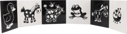 Einfache schwarz-weiße Illustrationen fördern die Konzentration, das visuelle Verfolgen und die erste Formwahrnehmung von Geburt an.