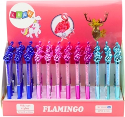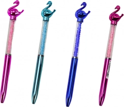 Kugelschreiber mit Flamingofigur und glitzernden Steinchen, blaue Mine 0,7 mm (Farbmix)