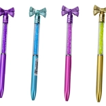 Die dekorative Schleife und die funkelnden Kristalle im transparenten Schaft machen den Stift zu einem stilvollen Accessoire für Schreibtisch und Federmäppchen.