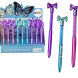 Dieser stilvolle Stift kombiniert elegantes Design mit praktischer Funktionalität. Die dekorative Schleife am oberen Ende und die Kammer mit kleinen „Diamanten“ erzeugen effektvolle Reflexe, die die Blicke auf sich ziehen. Ideal für Schule, Büro und persönliche Notizen.
