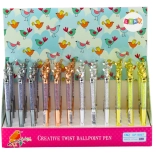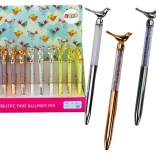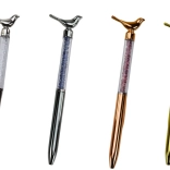 Dieser stylische Kugelschreiber besticht durch einen originellen Abschluss in Form eines Vögelchens und einen transparenten Teil, der mit kleinen Steinchen gefüllt ist, die sich bei Bewegung sanft glitzern. Ideal für Schule, Büro und als Geschenkaccessoire.
