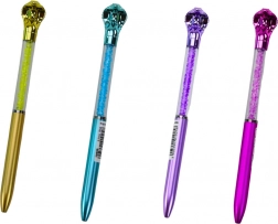 Dieser stilvolle Kugelschreiber überzeugt mit einer originellen Kobra-Figur am oberen Ende und einem transparenten Schaft, in dem bei jeder Bewegung kleine „Diamanten“ funkeln. Dank der blauen Mine mit 0,7 mm Strichstärke schreibt er flüssig und gut lesbar – ideal für Schule, Büro und Zuhause.