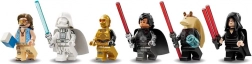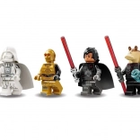 Erlebe dynamische Duelle dank zweier Federdruck-Shooter, drehbarer Kanonen sowie eines abnehmbaren Cockpits und eines Geschützturms für zwei Minifiguren. Sechs exklusive Charaktere, darunter Darth Jar Jar, Jedi Vader und der „Strand“-Luke, kommen mit kultigen Lichtschwertern und thematischem Zubehör (zum Beispiel einer Kiste mit blauer Milch).
