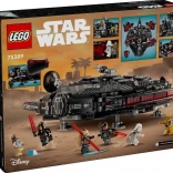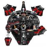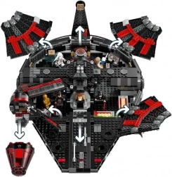 Tauche ein in ein alternatives STAR-WARS-Universum mit dem düster gestalteten Finsteren Falken. Das Modell kombiniert ikonische Formen mit einer neuen Schwarz-Rot-Ästhetik, einem detailreichen Innenraum und Spielfunktionen. Aufklappbare obere Paneele geben den Blick frei auf den Thron von Darth Jar Jar, das Kommandocenter, den Hyperantrieb, die Spaßzone und die Gefängniszelle.