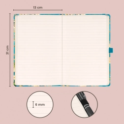 Dank praktischer Details haben Sie alles zur Hand: Das elastische Gummiband hält das Notizbuch sicher geschlossen, die Stiftschlaufe fixiert Ihr Schreibgerät und die Innentasche verstaut Visitenkarten oder lose Zettel. Linierte Seiten auf angenehm gelbem Papier unterstützen übersichtliche Notizen und tägliche Einträge.