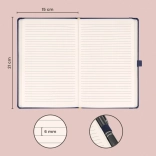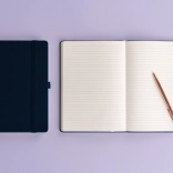 Das linierte Notizbuch NOTIQUE in Dunkelblau bietet eine hochwertige Balacron-Oberfläche, die außergewöhnlich widerstandsfähig gegen Abrieb und Schmutz ist. Dank des Formats 15 × 21 cm passt es bequem in die Tasche und bietet ausreichend Platz für tägliche Notizen.
