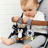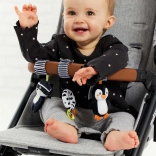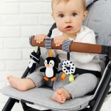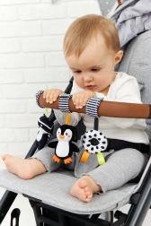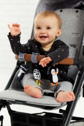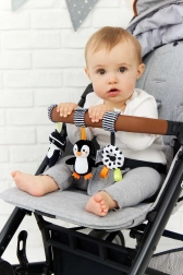 Das Spielzeug lässt sich leicht an verschiedenen Oberflächen wie Kinderwagen, Bett oder Autositz befestigen und ist somit der ideale Begleiter für unterwegs und zu Hause.