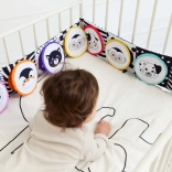 Das Design mit kontrastreichen Farben hilft dem Kind, das Sehvermögen zu entwickeln.