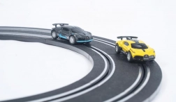 Erleben Sie intensive Rennatmosphäre auf der DRIVERO-Autorennbahn mit 8,4 m Länge. Dank Netzbetrieb (Trafo) genießen Sie stabile Leistung und eine zuverlässige Fahrt. Im Set enthalten sind zwei lizenzierte BUGATTI-Autos, und die Strecke lässt sich in drei unterschiedlichen Konfigurationen nach Wunsch aufbauen.