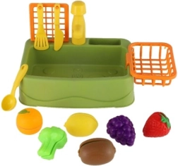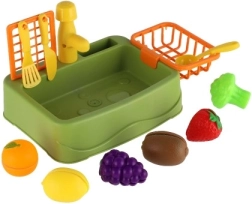 Das Kinder-Küchenspülbecken mit Obst bringt realitätsnahes Rollenspiel rund ums Zuhause. Dank des Pump-Wasserhahns können Kinder Wasser zirkulieren lassen und echtes Spülen nachahmen. Das Set wird durch schneidbares Obst und praktisches Besteck ergänzt, sodass kleine Köchinnen und Köche alles von der Vorbereitung bis zum Aufräumen meistern.