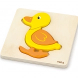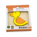 Holzpuzzle – Steckpuzzle für die Kleinsten mit Entchenmotiv. Maße des Entchens ca. 13 × 11 cm. Verpackungsmaße ca. 15,5 × 18 × 2 cm. Alter 18 Monate+