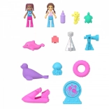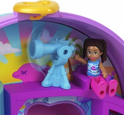Entdecken Sie die aufregende Welt der Delfin-Aquarien mit diesem kompakten Polly Pocket Set. Beim Öffnen zeigt sich ein Tierpflegezentrum mit Kindern und Meerestieren. Geliefert mit zwei Micropuppen und 12 entzückenden Zubehörteilen.