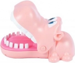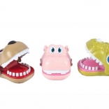 Ihr könnt solo oder in der Gruppe spielen. Im Solo-Modus versucht ihr, alle gesunden Zähne zu drücken und nur den schlechten übrig zu lassen. In der Gruppe drücken die Spieler abwechselnd jeweils einen Zahn – wen das Tier „beißt“, der scheidet aus, und die Runde geht weiter, bis ein Sieger übrig bleibt.