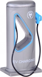 Das Modell enthält eine Ladestation, die einen realistischen Ladeprozess mit entsprechenden Lichtern und Geräuschen bietet. Die Karosserie ist aus Metall, während die Räder aus Gummi und das Chassis aus Kunststoff bestehen.