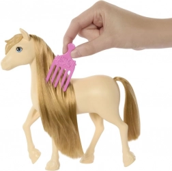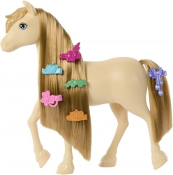 Entdecke die Magie des Stylings mit dem Pferd Tornado aus der Barbie-Welt. Die lange, weiche Mähne und der Schweif laden zum Kämmen, Flechten und Verzieren ein. Dank des umfangreichen Zubehörs kreieren Kinder einzigartige Frisuren – von süßen Wellen bis zu verspielten Kombinationen aus Spangen und Schmuck.