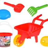 Dieses Kinder-Set bietet alles, was kleine Gärtner brauchen: eine stabile Kunststoffschubkarre, eine praktische Schaufel, eine leichte Harke und einen Eimer mit fröhlichem Motiv. Durch das geringe Gewicht und die ergonomischen Formen lässt es sich leicht bedienen – ob beim Transport von Sand, Laub oder beim Bauen von Burgen.