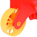 Die Kunststoffschubkarre mit einem breiten Rad und bequemen Griffen erleichtert das Transportieren von Sand, Erde oder Spielzeug. Kinder trainieren Gleichgewicht und Bewegungskoordination.
