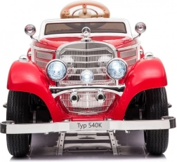 Der Retro-Roadster MERCEDES-BENZ 540K mit Akku begeistert kleine Fahrer mit eleganter Karosserie, Chromakzenten und einem Armaturenbrett in nussbaumähnlicher Optik. Der Innenraum wird durch eine komfortable Sitzbank aus hellem, weichem Ökoleder und ein ergonomisches Lenkrad ergänzt. Für Sicherheit sorgen ein Beckengurt und ein sanfter Start ohne Ruckeln.
