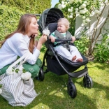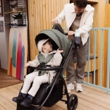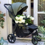 Die großen Räder aus EVA-Schaum mit 4-Rad-Federung meistern Unebenheiten mühelos. Schwenk- und arretierbare Vorderräder passen sich dem Gelände an, während der geräumige Korb alles Nötige aufnimmt. Der Kinderwagen erfüllt die Norm EN 1888 und verfügt über das europäische TÜV-Zertifikat – somit werden strenge Sicherheitsanforderungen eingehalten.