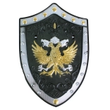 Der Schild mit markantem goldenem Doppeladler und Ornamenten verleiht der Ritterausrüstung einen authentischen Look und Schutz in jeder Schlacht.