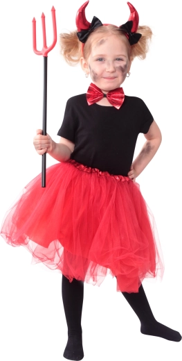 Der voluminöse Tüllrock in leuchtendem Rot sorgt für den Wow-Effekt, der Schwanz unterstreicht den teuflischen Look.