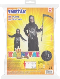 Stilvolles Kinderkostüm des Sensenmanns für 6–8 Jahre (116–128 cm) schafft eine authentische Halloween-Atmosphäre. Enthalten ist ein schwarzer Overall mit weißem Skelettdruck und Kapuze für einen gruseligen Effekt. Ideal für Halloween, Karneval und Mottopartys; geliefert in einer Öko-Verpackung, die Platz und Ressourcen schont.