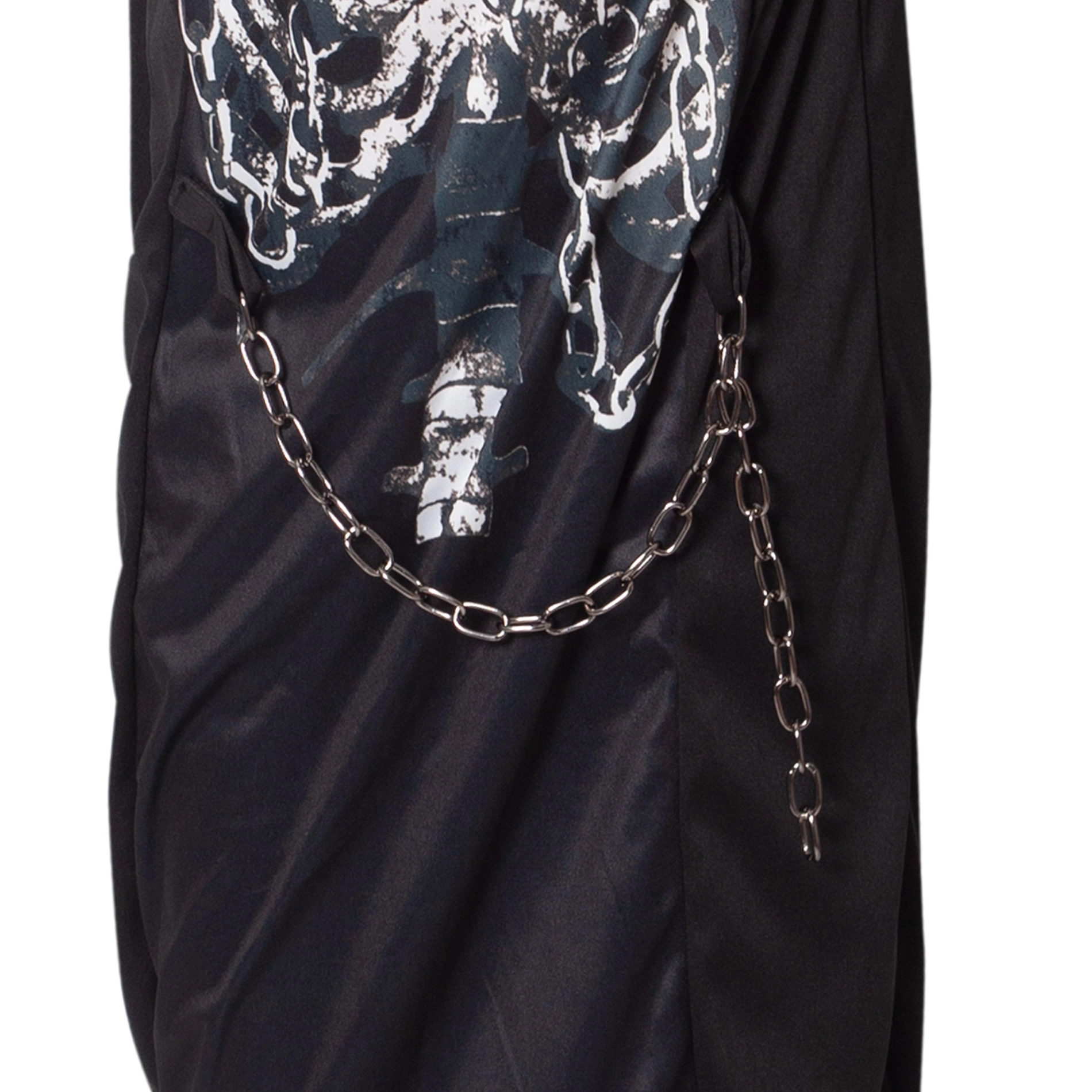 Die Kapuze und der kontrastierende Skelettdruck sorgen sofort für einen schaurigen Effekt – ideal für Halloween und Karneval.