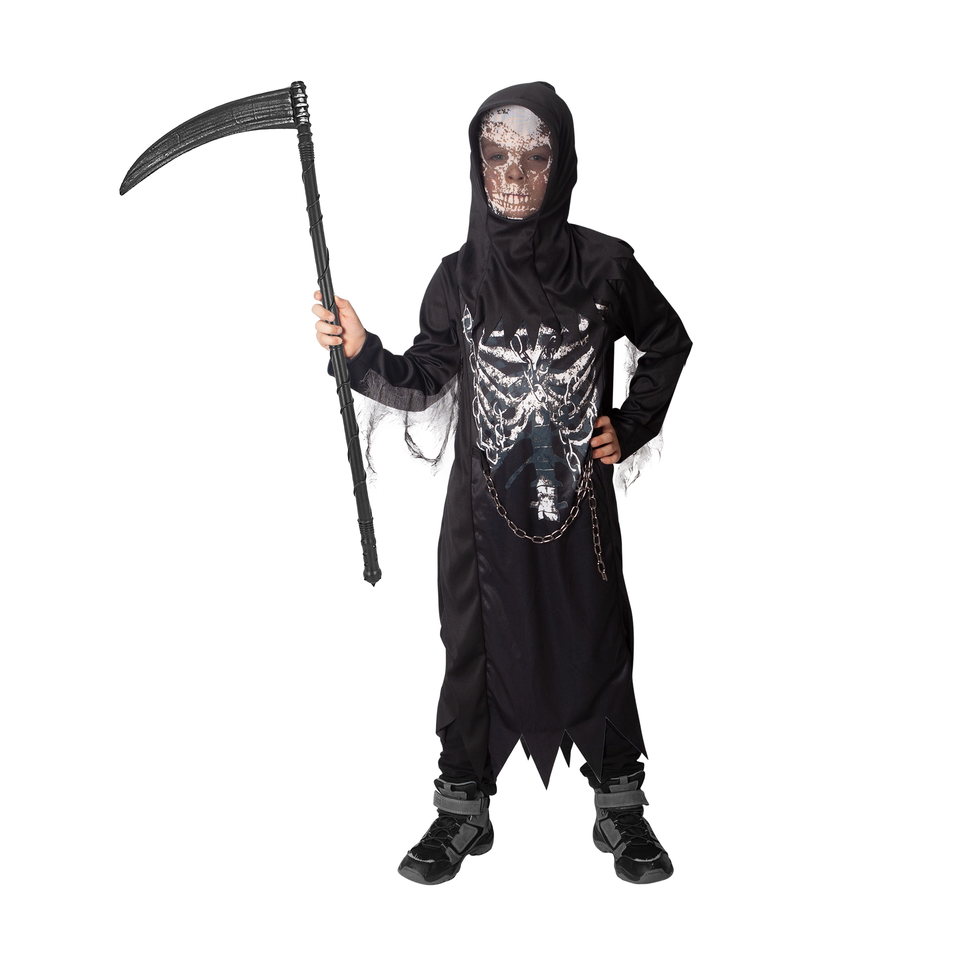 - Praktische Kapuze – vervollständigt den gruseligen „Grim-Reaper“-Stil