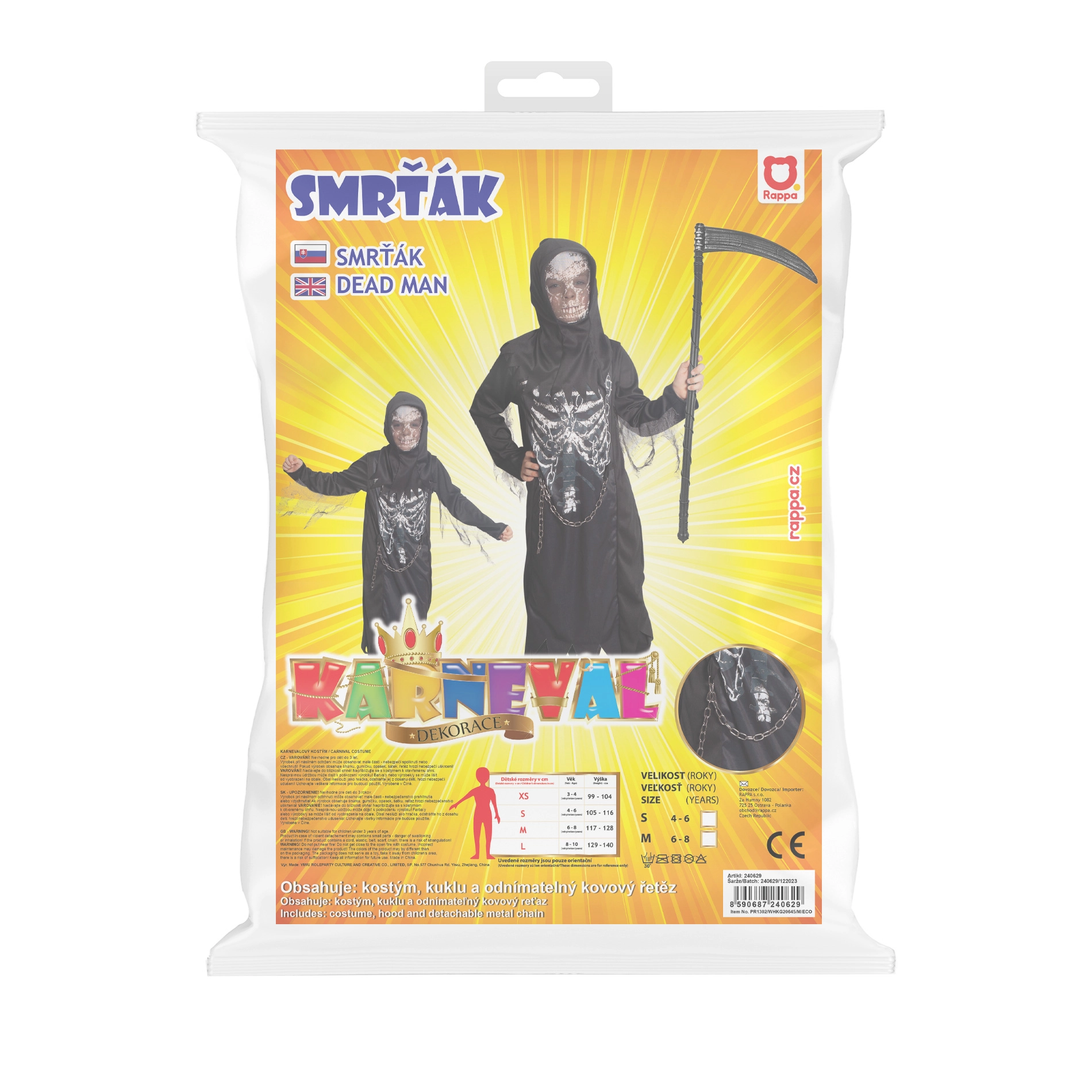 Kreieren Sie in Sekunden einen schaurigen Look. Dieses Kinderkostüm des Sensenmanns in der universellen Größe M passt perfekt für Kinder von 6 bis 8 Jahren (116–128 cm). Leichtes, bequemes Material mit kontrastierendem Skelettdruck und praktischer Kapuze sorgt für einen auffälligen Effekt ohne aufwendiges Umziehen.