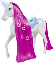 Entdecken Sie die magische Welt voller Fantasie mit diesem Einhorn für die Puppe Steffi. Der perfekte Begleiter für Ihre Puppe mit einem leuchtenden Horn, das jedem Spiel eine zauberhafte Atmosphäre verleiht.