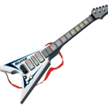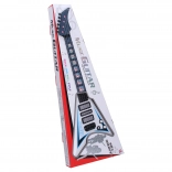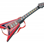 Diese elektrische Gitarre ist ideal für Anfänger und fortgeschrittene Musiker dank ihrer Abmessungen 22x5x56 cm. Sie hat Licht- und Klangeffekte, die ein einzigartiges Erlebnis beim Spielen bieten. Betrieben durch drei 3xAA-Batterien, die nicht im Lieferumfang enthalten sind, und einfacher Bedienung durch den ON/OFF-Schalter an den Potentiometern. Beide Potentiometer dienen zur Steuerung der Effekte.