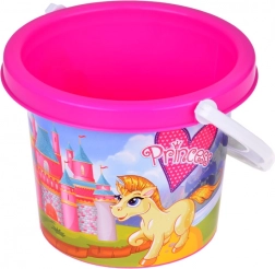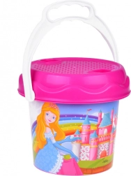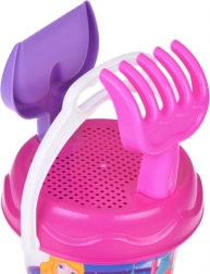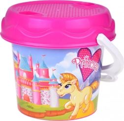 Der praktische Deckel mit Öffnungen ermöglicht das Sieben von Sand und das Bauen glatter Konstruktionen. Das farbenfrohe Design mit Prinzessinnenmotiv begeistert Kinder.