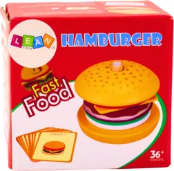 Außerdem enthält das Set 10 Bestellkarten, die verschiedene Hamburger-Rezepte darstellen. Jede Karte ist kinderfreundlich gestaltet und ermöglicht es, den Anweisungen zu folgen und Hamburger nach Vorgabe zu bauen. Diese Funktion fördert nicht nur die manuellen Fähigkeiten des Kindes, sondern hilft auch, Farben, Formen und Zutaten zu unterscheiden.