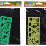 Entdecken Sie die Magie der Kratztechnik! Mit diesem Set gestalten Sie originelle Bilder ohne Unordnung und ohne aufwendige Vorbereitung. Nehmen Sie einfach den beiliegenden Stift, folgen Sie der Schablone (oder gestalten Sie frei) und legen Sie nach und nach die farbigen Schichten unter der Oberfläche frei.