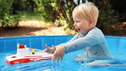 Dank der schwimmenden Konstruktion ist das Boot ideal für Badewanne, Planschbecken und Gartenteich. Die Stabilität ermöglicht sanfte Manöver und langanhaltenden Spielspaß.