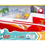 Das Feuerwehr-Set BOAZZ bringt eine dynamische Wasserrettungsmission ins Kinderzimmer. Das rot‑weiße Schnellboot mit detaillierten „Fire Fighter“-Aufdrucken und der stylische Katamaran bilden ein starkes Team für Einsätze auf dem Wasser. Die funktionierende Wasserkanone spritzt wirklich Wasser und steigert so den Spielspaß und die Authentizität.