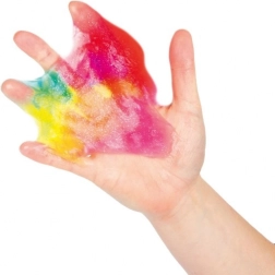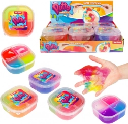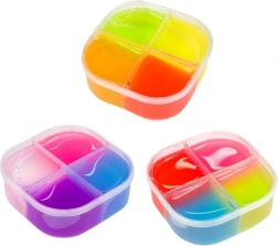Regenbogenschleim ist ideal für alle, die etwas Ungewöhnliches und Unterhaltsames erleben möchten. Die Masse in den transparenten Bechern ist in vier Farben aufgeteilt, was einzigartige Kombinationen und Farbexperimente ermöglicht.