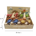 Entdecken Sie den Spaß mit dem drückbaren Dinosaurier aus Holz, erhältlich in 5 Farbvarianten – blau, grün, braun, orange und rot.