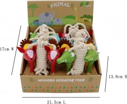 Das niedliche Springseil mit Holzgriffen erfreut jeden kleinen Hüpfer. Dank der Länge von 210 cm und den fröhlichen Tiermotiven (Elefant, Löwe, Krokodil, Fuchs) bringt es Freude an Bewegung und hilft, Rhythmus, Geschicklichkeit und Koordination zu fördern.