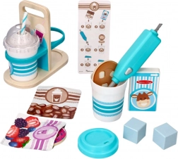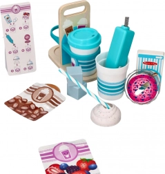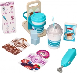 Das Kinderset für heiße und kalte Getränke ist ideal für kleine Baristas ab 3 Jahren. Kinder können so tun, als würden sie Kaffee, heiße Schokolade und erfrischende Milkshakes zubereiten – von der Auswahl der Zutaten über das Mischen bis zum Servieren.