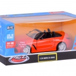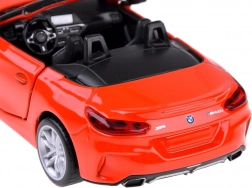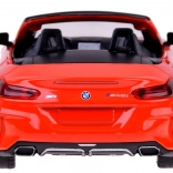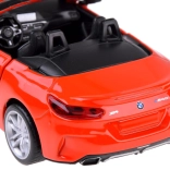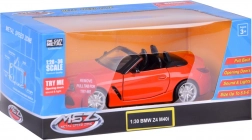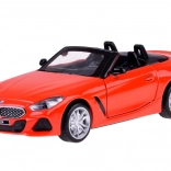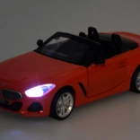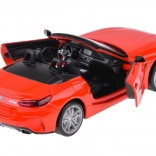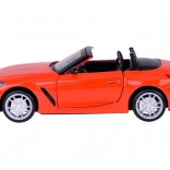 Dieses detailreich gestaltete Cabrio BMW Z4 M40i überzeugt durch hochwertige Ausführung für authentisches Aussehen und Spiel. Die Metallkarosserie, Gummireifen und das Kunststofffahrwerk sorgen für Stabilität und Langlebigkeit. Beim Öffnen der Türen werden Hupen- und Alarmtöne zusammen mit blinkenden Lichtern vorne und hinten aktiviert. Durch Andrücken des Modells auf die Unterlage starten Start- und Motorlaufgeräusche, zudem leuchtet das Armaturenbrett.