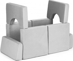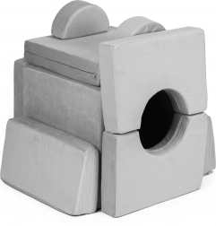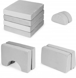 Aus 10 weichen Elementen bauen Kinder ein Sofa, einen Tunnel, eine Brücke oder eine Höhle – fördert die Fantasie sowie Motorik und Zusammenarbeit.