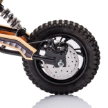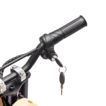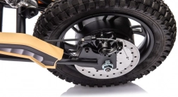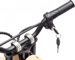 Für Sicherheit sorgen Scheibenbremsen, federnde Dämpfer und massive Offroad-Reifen mit hervorragender Traktion. Das Bike wird per Schlüssel gestartet, die Bedienung ist kinderfreundlich – Gas am Griff, wirkungsvolle Bremsen und klare Lenkreaktion. Ideal für die ersten Erfahrungen im Gelände.