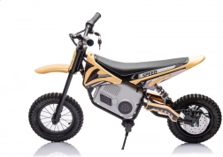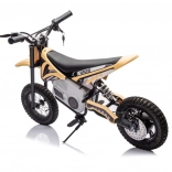 Das elektrische Kinder-Crossbike 36V in Khaki/Schwarz bietet ein realistisches Fahrerlebnis im Garten und auf leichtem Offroad. Die widerstandsfähige Konstruktion aus Metall und hochwertigem Kunststoff, breite Lenker mit sicherem Griff und ein ergonomischer Sitz sorgen für Stabilität und Komfort. Dank Elektroantrieb ist die Fahrt leise, sanft und emissionsfrei.