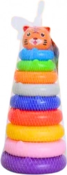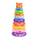 Auf der Spitze dieser Pyramide befindet sich ein niedlicher kleiner Tiger, der den Gesamtcharme verleiht und zum Spielen anregt. Das Spiel umfasst das Stapeln der Ringe von der größten zur kleinsten, was dazu beiträgt, logisches Denken und die Hand-Auge-Koordination zu entwickeln.