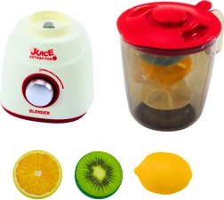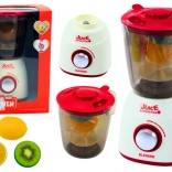 Schenken Sie Kindern Spaß wie in einer echten Küche. Der Kindermixer mit Licht und Geräuschen imitiert ein echtes Gerät – nach dem Einschalten drehen sich die Kunststoffklingen, Lichter leuchten und Effekte ertönen, die ein besonders realistisches Spielerlebnis schaffen. Zum Set gehören außerdem drei Kunststoff-Obststücke für sicheres „Mixen“.