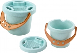 Der strukturierte Deckel des Eimers dient als Sandsieb – ideal zum Sieben und für saubere Sandbauten.