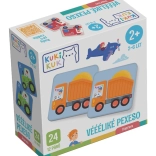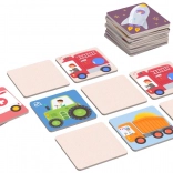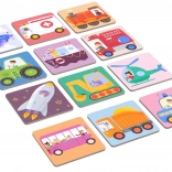 Das klassische Memo-Spiel und Varianten fördern kognitive Fähigkeiten und vermitteln spielerisch die Namen der Verkehrsmittel und ihre Funktionen.